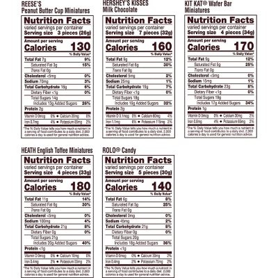 *the % daily value (dv) tells you how much a nutrient in a serving of food contributes to a daily diet. There are 200 calories in 1 serving, 5 pieces (1.4 oz) of hershey's miniatures, special dark, assorted chocolate bars. Hershey's organic dark chocolate miniatures pouch at walgreens. Hershey's miniatures dark chocolate candy share pack comes filled with a variety of delicious miniature candy bars. Hershey's miniatures assorted dark chocolate candy bars, individually wrapped, 10.1 oz share pack :